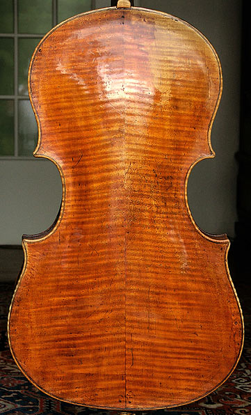 Der Boden des Cellos von Pietro Guarneri, wunderschön und perfekt erhalten