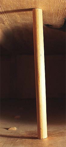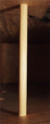Eine alte, schlecht passende Stimme in einem Cello. Da sie zu kurz ist und bereits mit dem Fußpunkt nach außen versetzt steht, kann man sie nicht mehr nachpassen.